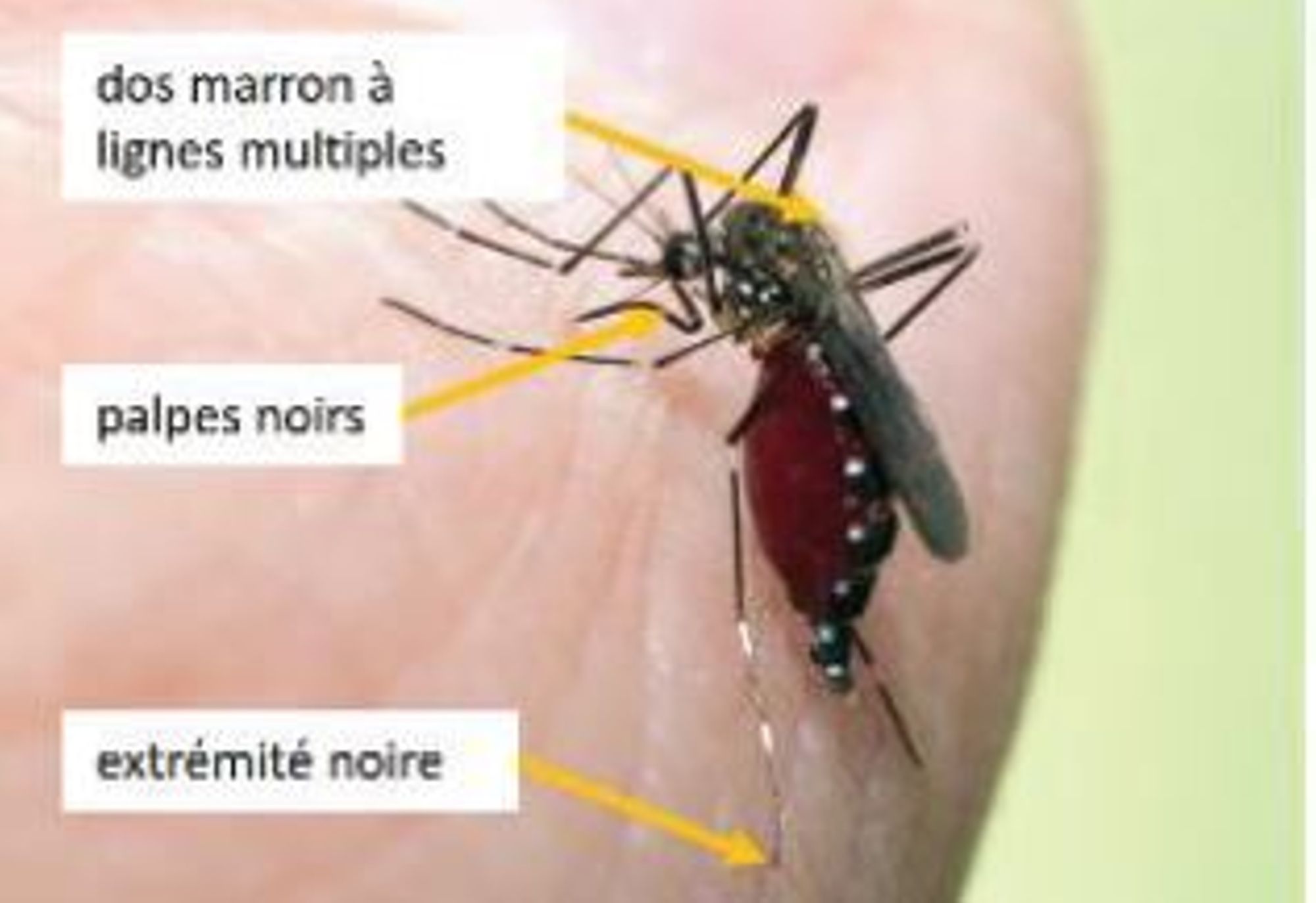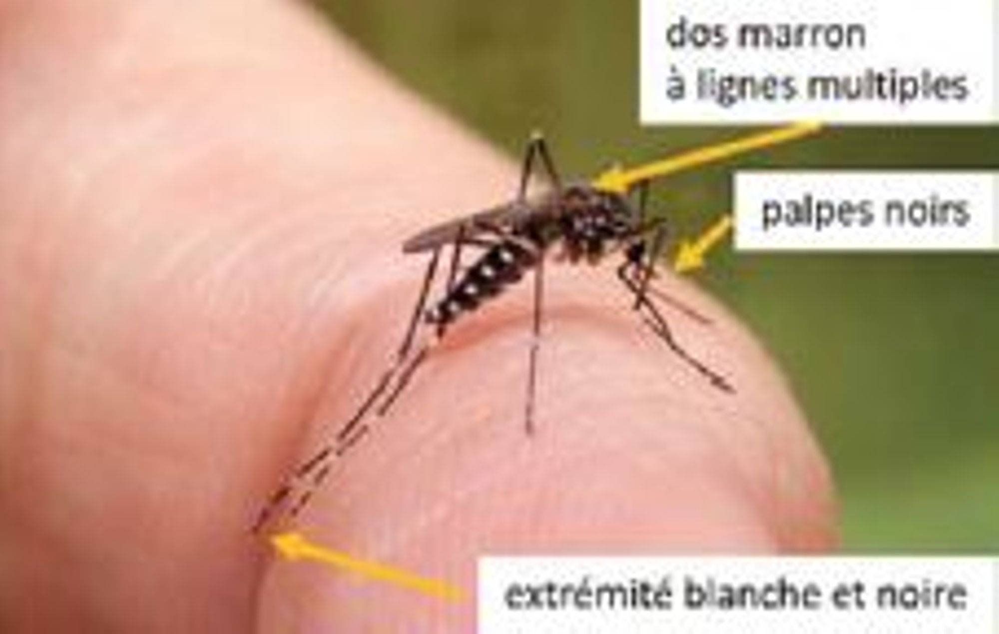 =>Noir et blanc avec des lignes longitudinales brun jaunatre sur le scutum (distinction avec A.albopictus et A.aegypti)